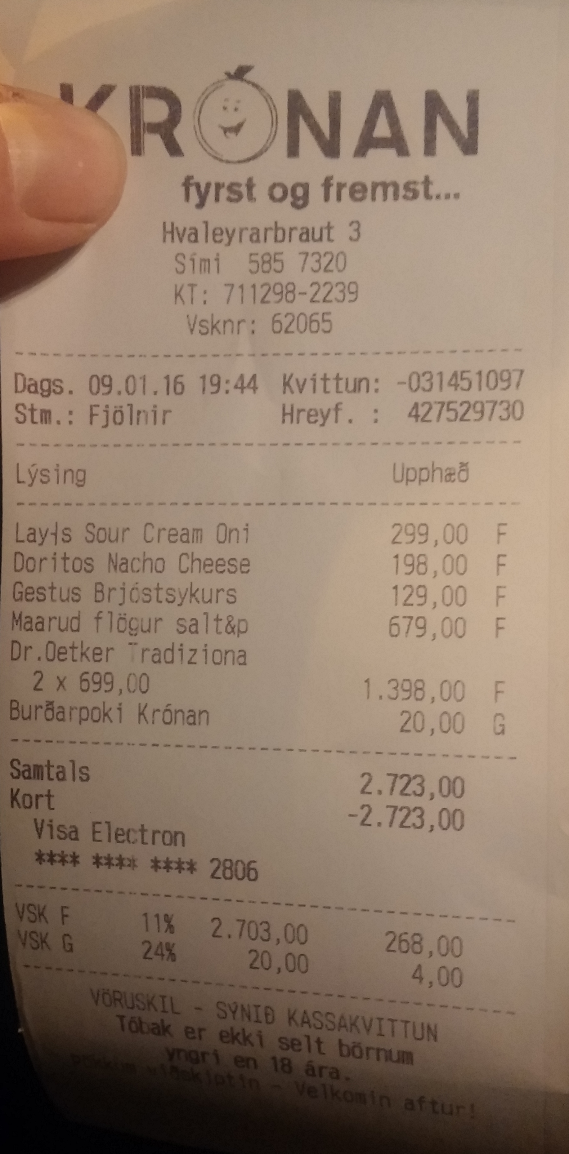 | 6 | Burðarpoki Krónan | Innkaupapokar | Krónan burðarpoki | 20 | 1 | 20 | ||