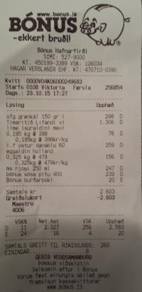 | 6 | ms rjómi 250 ml | Rjómi | MS rjómi 250 ml | 247 | 1 | 247 | ||