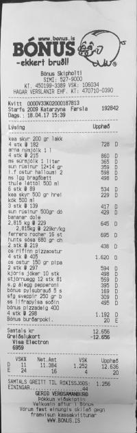 Skráð samtala og samtala strimilsfærsla stemmir ekki