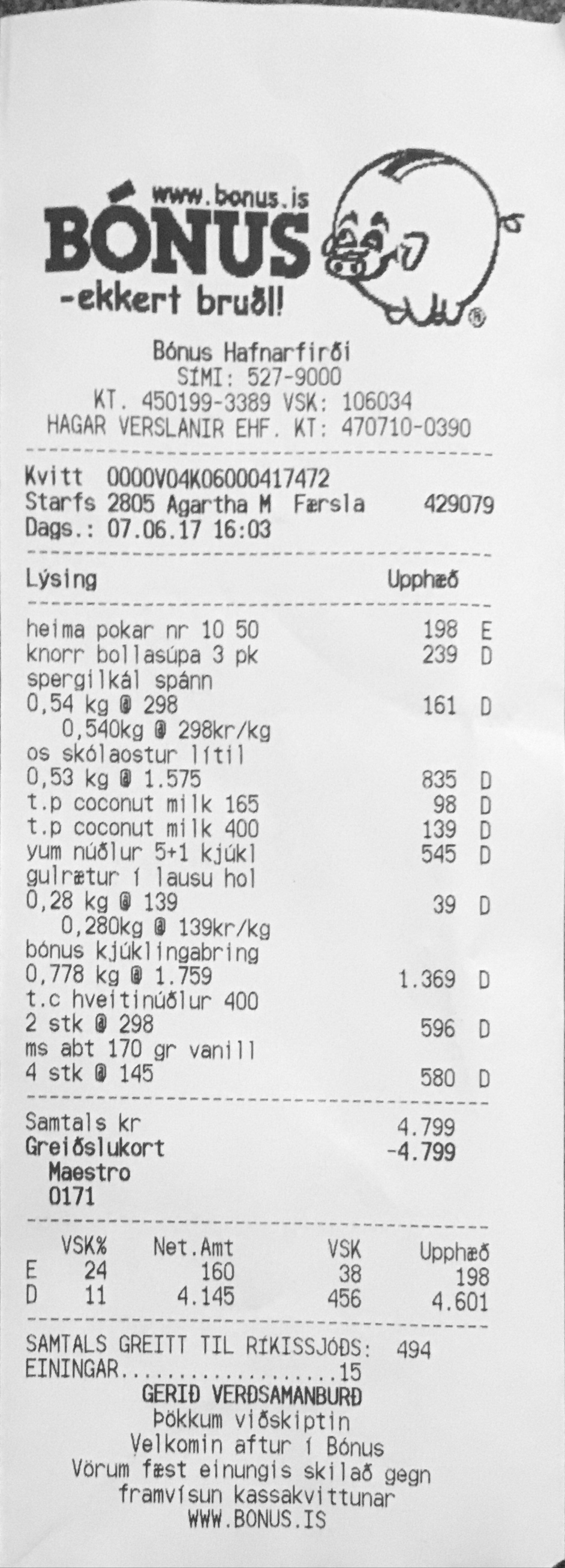 | 9 | bónus kjúklingabring | Kjúklingabringur, ferskar | Bónus kjúklingabringur, ferskar, marineraðar | 1.759 | 0,778 | 1.369 | ||