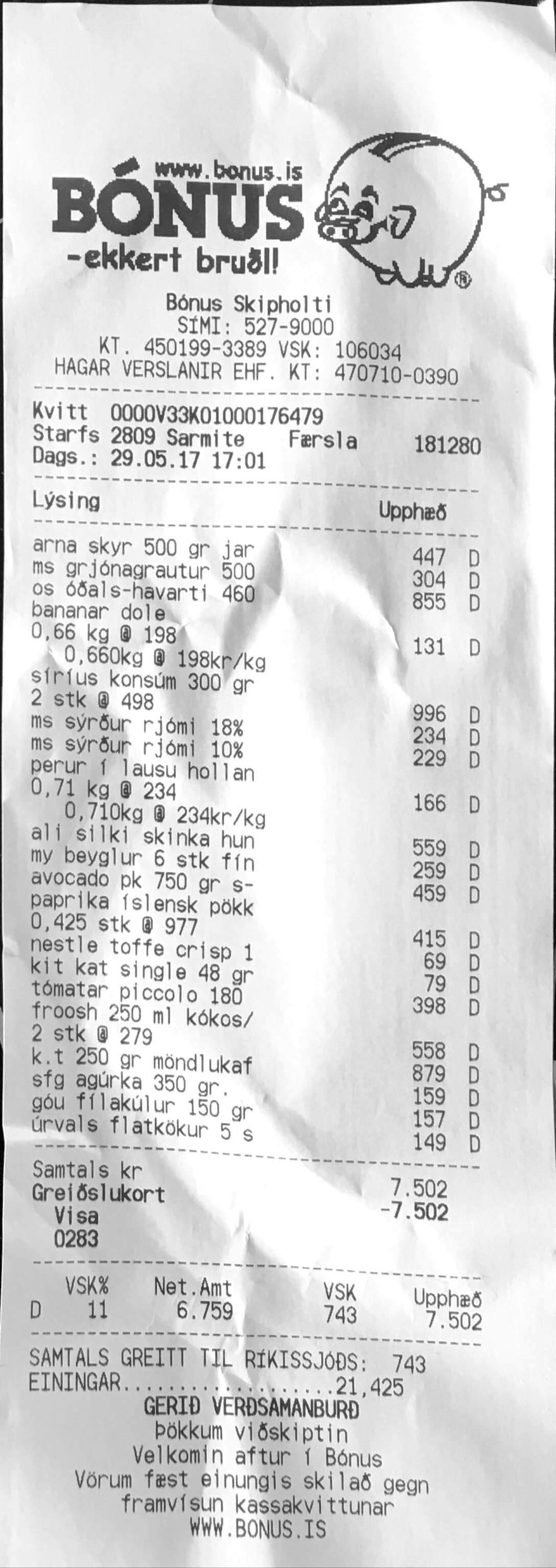 | 7 | ms sýrður rjómi 10% | Sýrður rjómi | MS Sýrður rjómi 10% 180g | 229 | 1 | 229 | ||