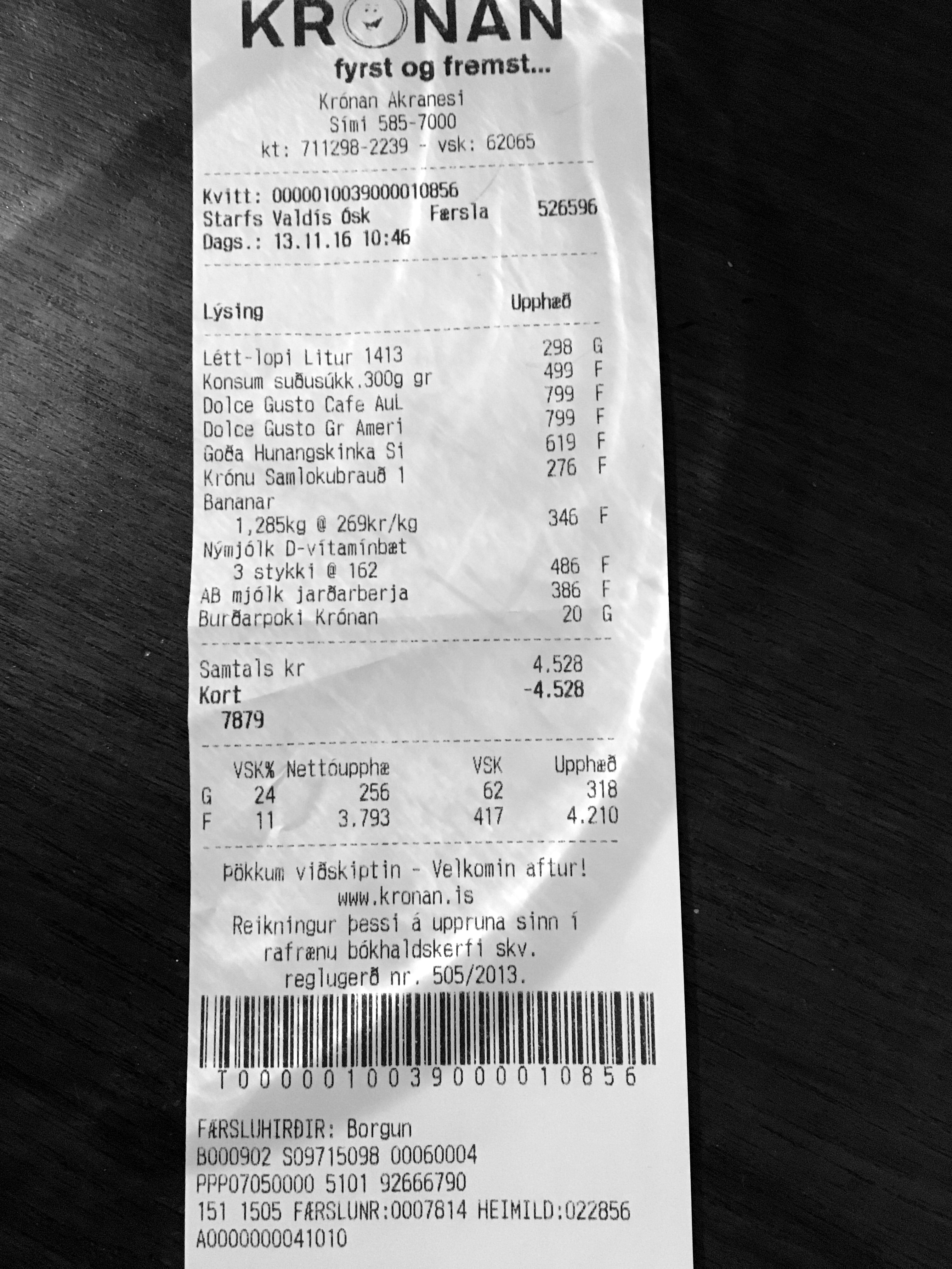 | 6 | Nýmjólk D-vítamínbæt | Mjólk | MS nýmjólk, D-vítamínbætt 1L | 162 | 3 | 486 | ||