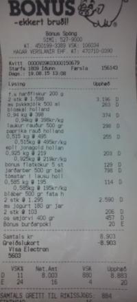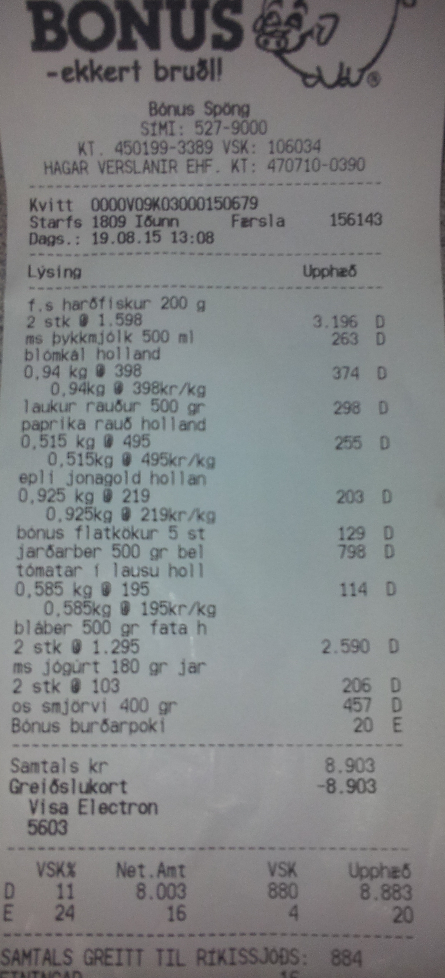 | 13 | Bónus burðarpoki | Innkaupapokar | Bónus burðarpoki | 20 | 1 | 20 | ||