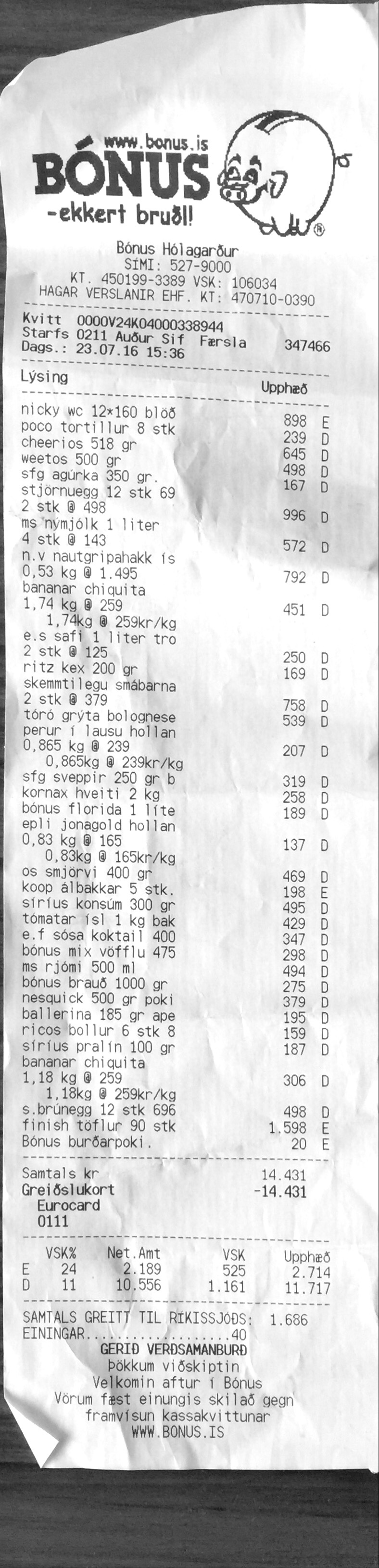 # Texti á strimli Vöruflokkur Vörueining Einingarverð Magn Afsláttur Samtals