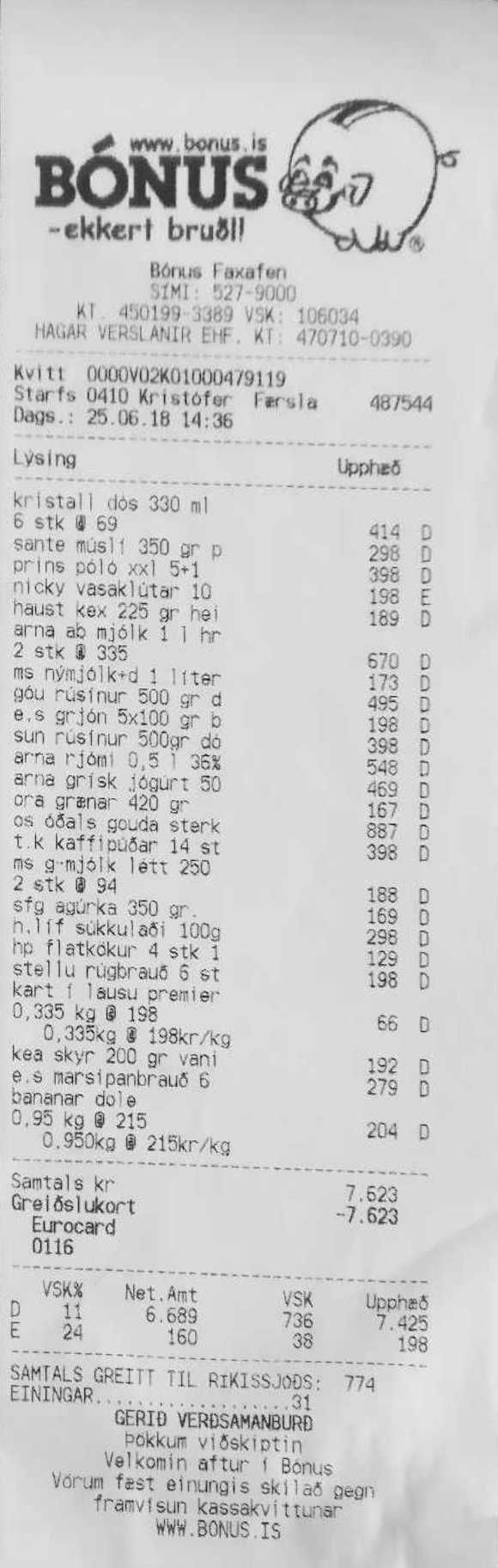 Skráð samtala og samtala strimilsfærsla stemmir ekki