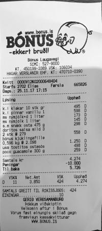 | 3 | ms nýmjólk+d 1 líter | Mjólk | MS nýmjólk, D-vítamínbætt 1L | 173 | 1 | 173 | ||