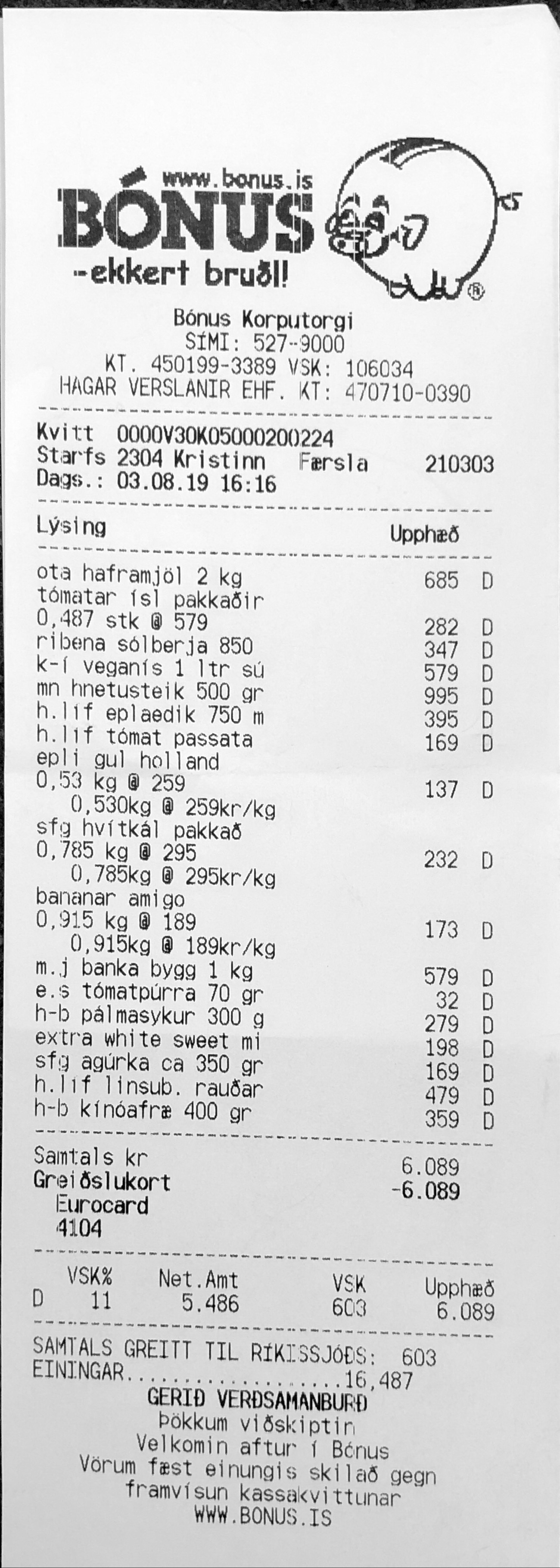 | 1 | ota haframjöl 2 kg | 685 | 1 | 685 | ||||