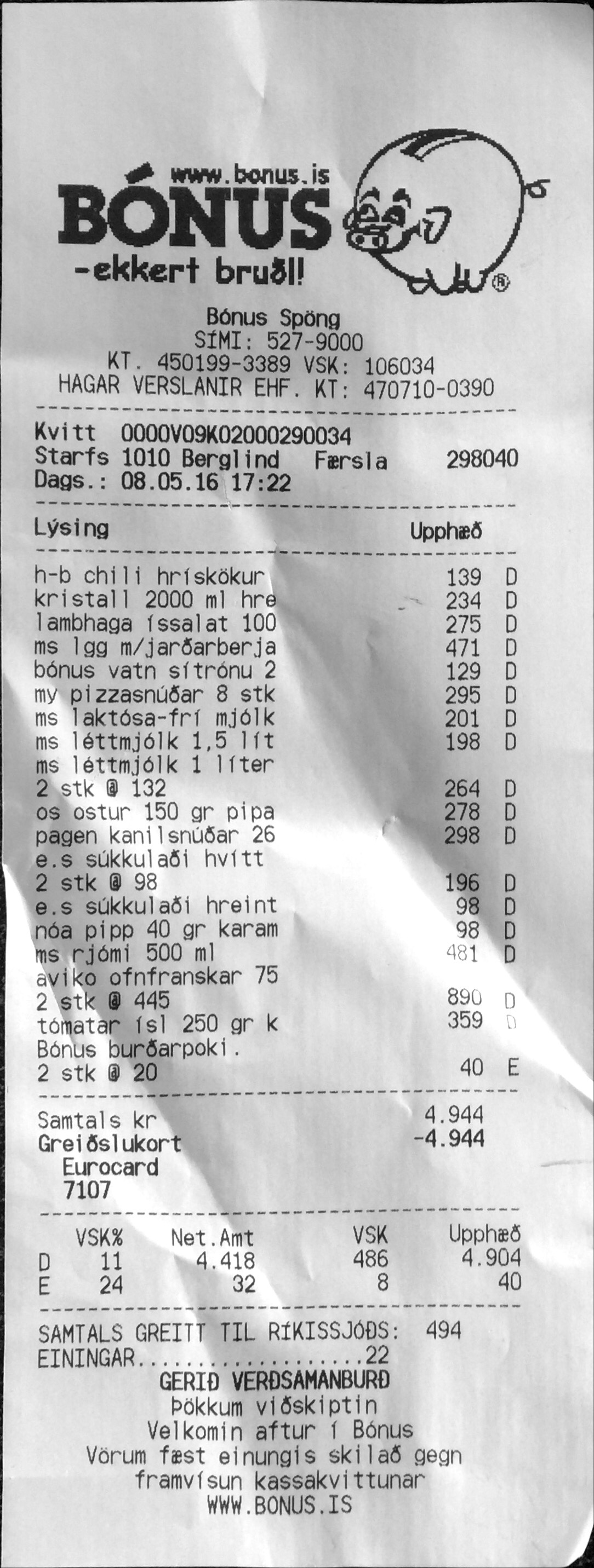 • Skráð samtala og samtala strimilsfærsla stemmir