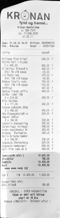 | 13 | Krónu Kasjúhnetur Br | 429 | 1 | 429 | ||||