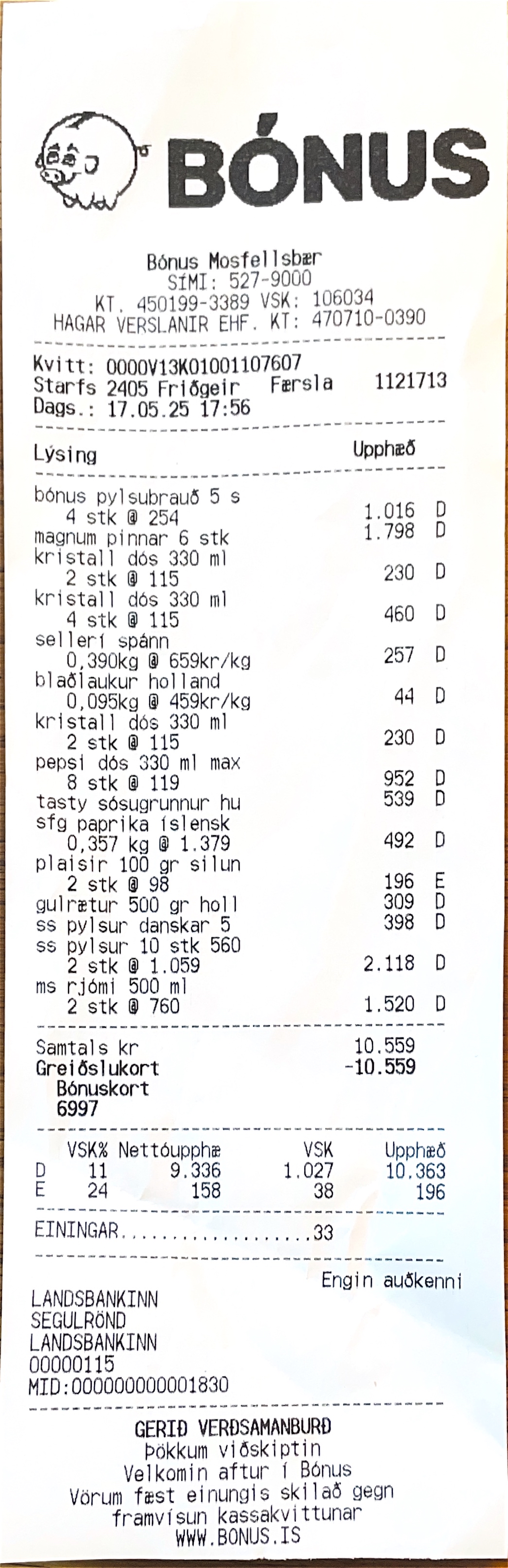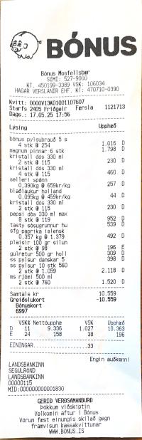 | 1 | Bónus pylsubrauð 5 s | Pylsubrauð | Bónus pylsubrauð 5 stykki | 254 | 4 | 1.016 | ||