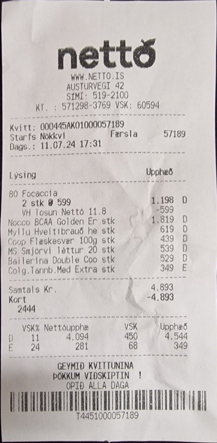 | 3 | myllu hveitibrauð heilt | Brauð | 619 | 1 | 619 | ||||