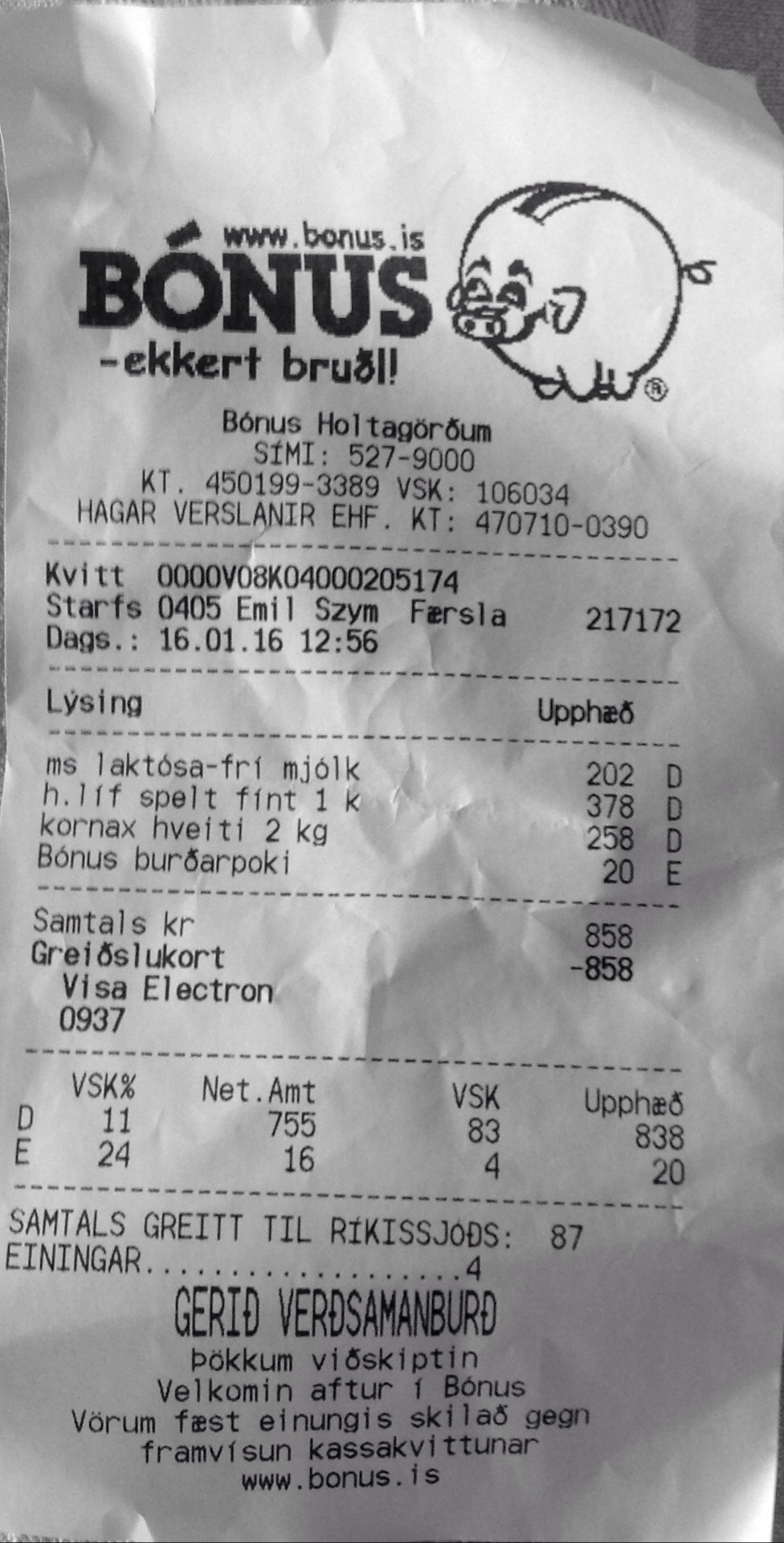 | 1 | ms laktósa-frí mjólk | Mjólk | MS Laktósalaus Léttmjólk D-vítamínbætt 1L | 202 | 1 | 202 | ||