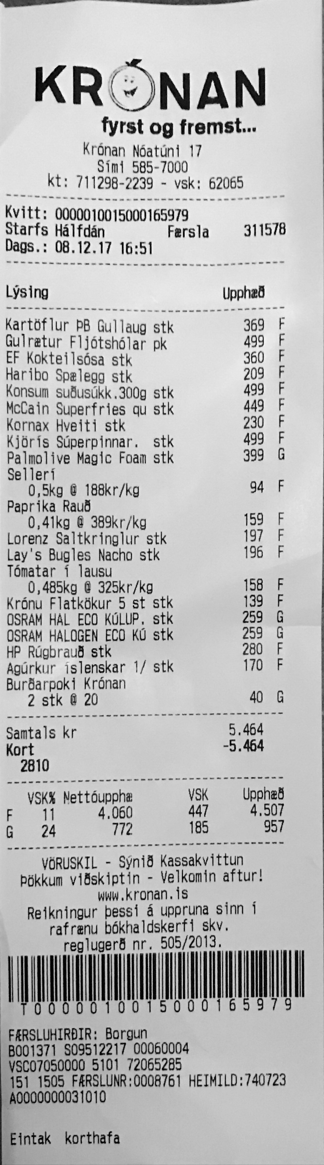 • Skráð samtala og samtala strimilsfærsla stemmir ekki