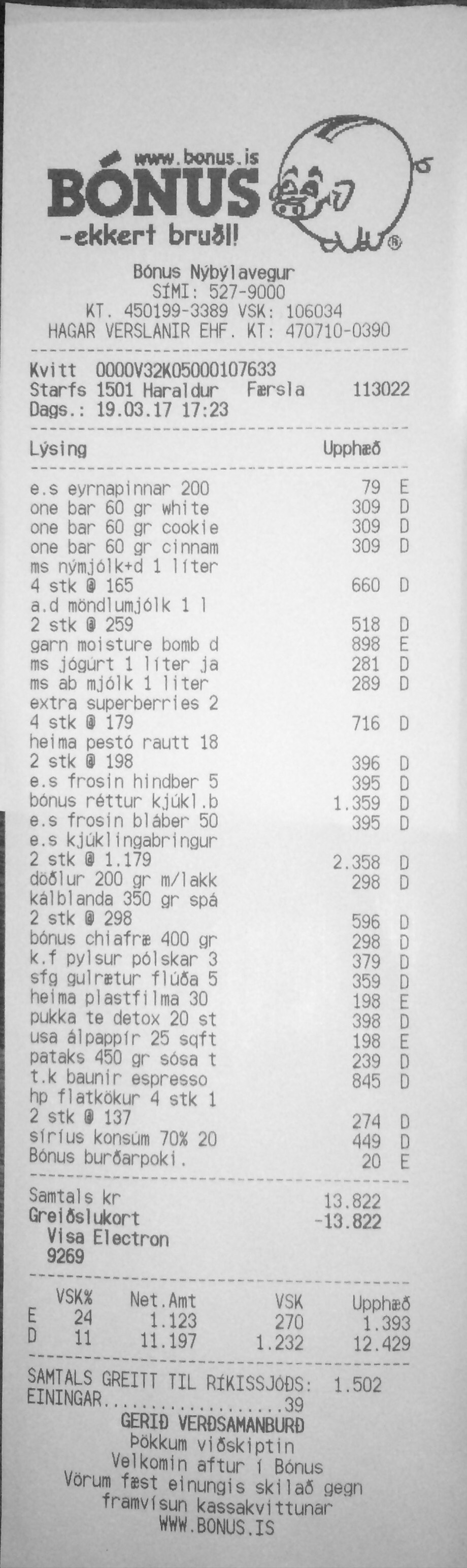 • Skráð samtala og samtala strimilsfærsla stemmir ekki