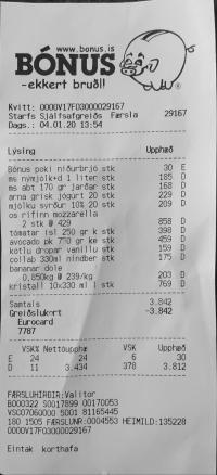 | 1 | Bónus poki niðurbrjó | Innkaupapokar | 30 | 1 | 30 | |||