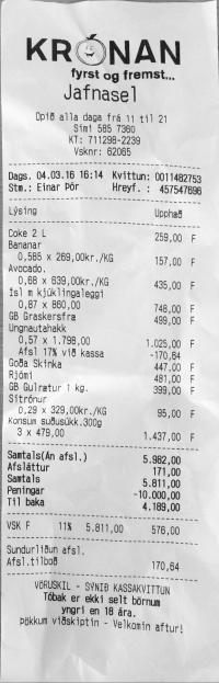 • Skráð samtala og samtala strimilsfærsla stemmir