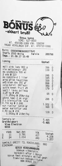 | 4 | ms nýmjólk+d 1 líter | Mjólk | MS nýmjólk, D-vítamínbætt 1L | 165 | 1 | 165 | ||