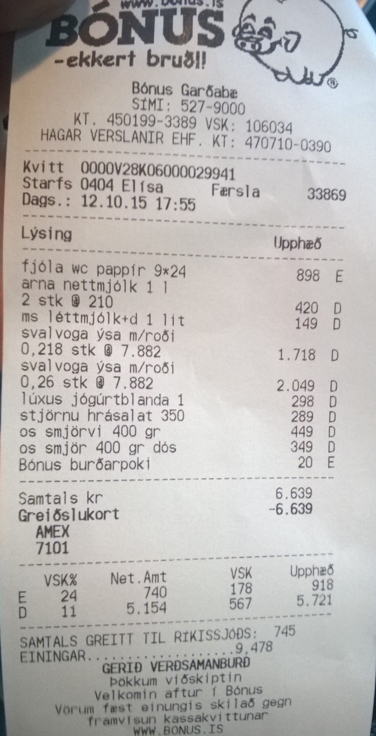 | 6 | bónus jógúrtblanda 3 | 298 | 1 | 298 | ||||