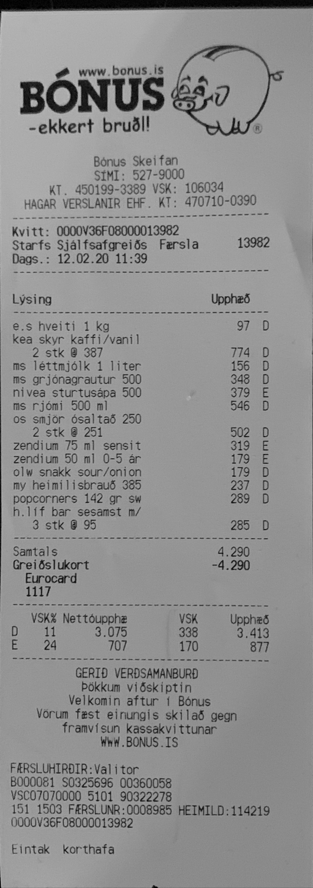• Skráð samtala og samtala strimilsfærsla stemmir ekki