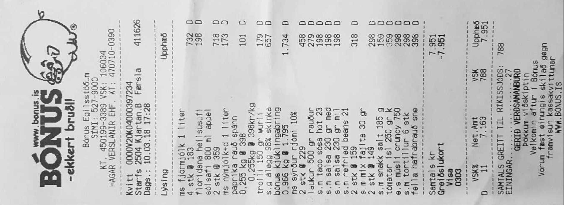 • Skráð samtala og samtala strimilsfærsla stemmir ekki