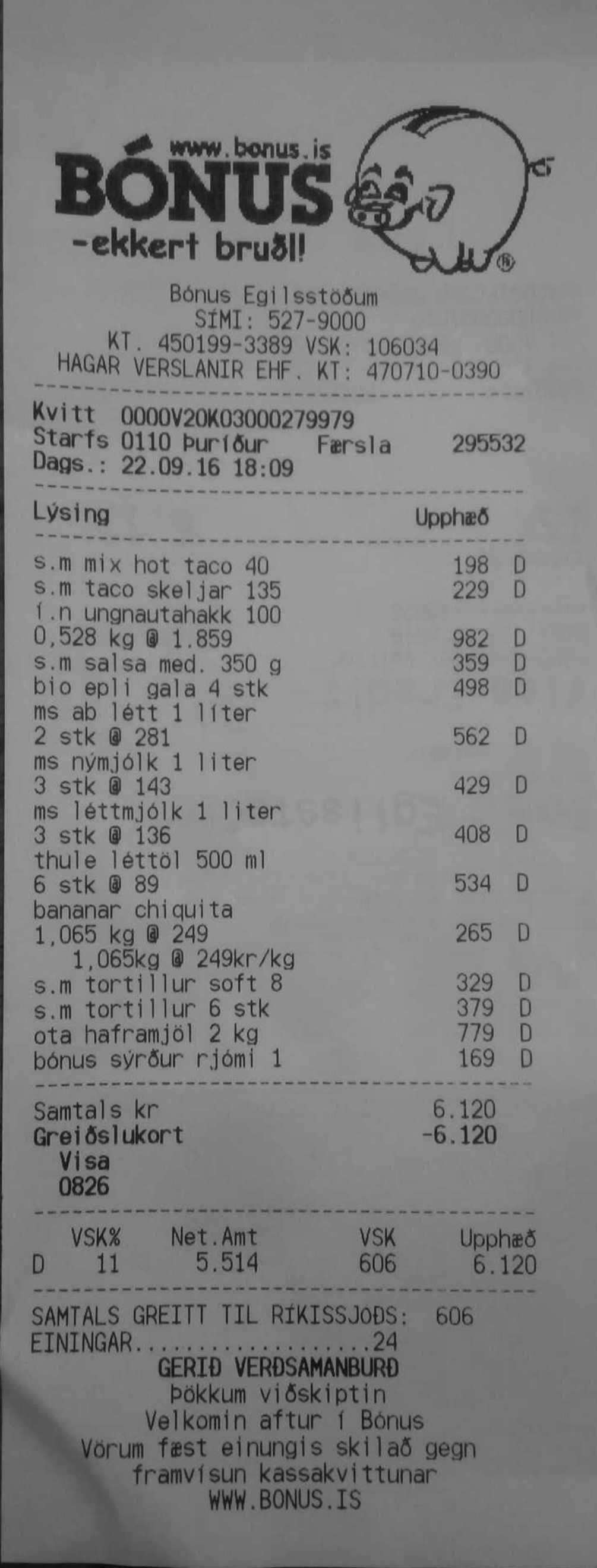 | 10 | Bónus sýrður rjómi 1 | Sýrður rjómi | Bónus sýrður rjómi 18% 200ml | 169 | 1 | 169 | ||