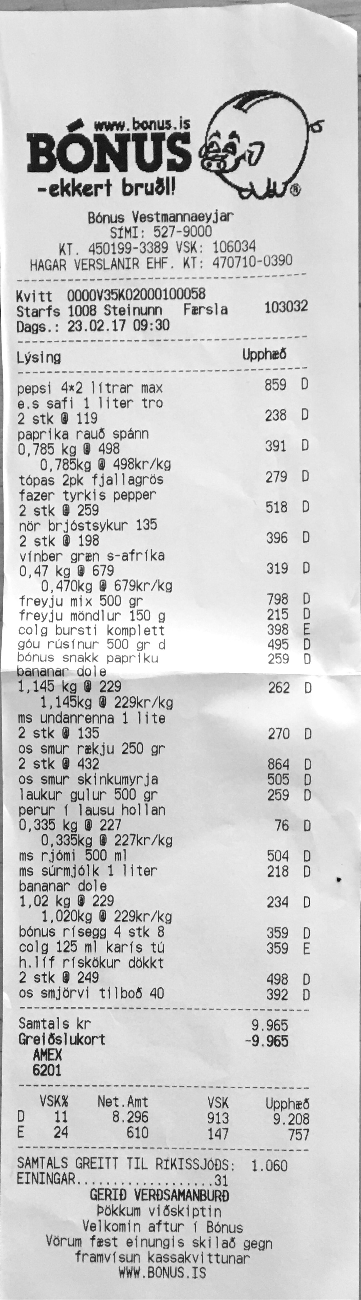 • Skráð samtala og samtala strimilsfærsla stemmir ekki