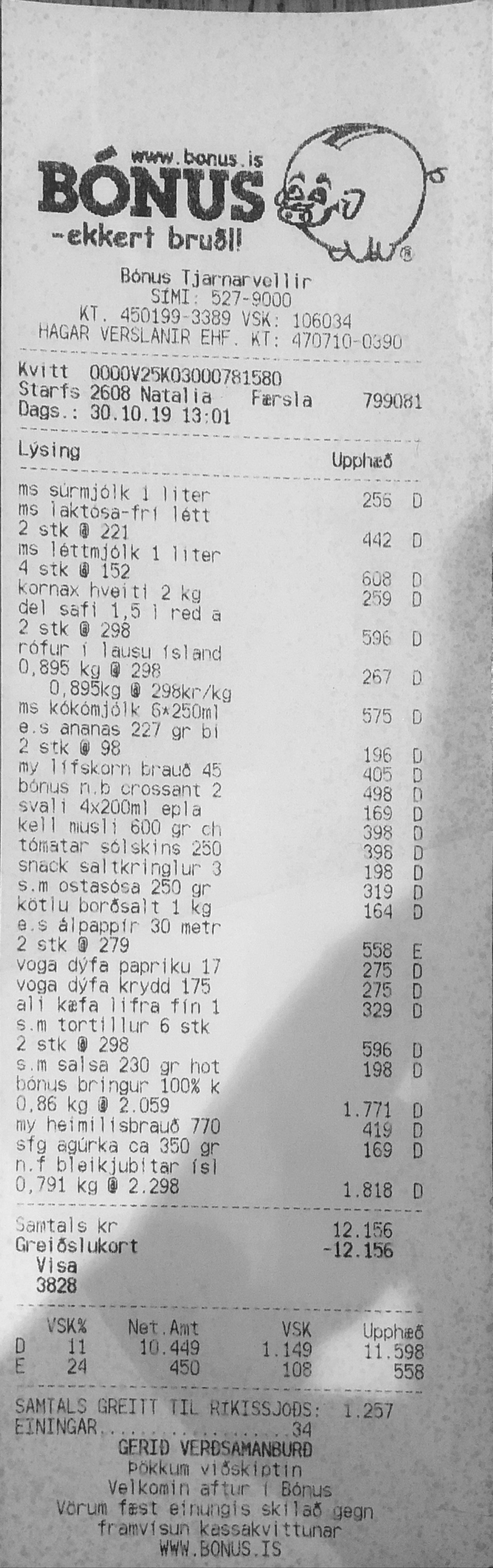 | 1 | ms súrmjólk 1 liter | Súrmjólk | MS Súrmjólk, 1L | 256 | 1 | 256 | ||