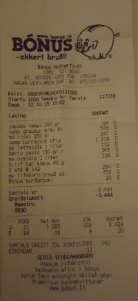 | 10 | Bónus burðarpoki | Innkaupapokar | Bónus burðarpoki | 20 | 1 | 20 | ||