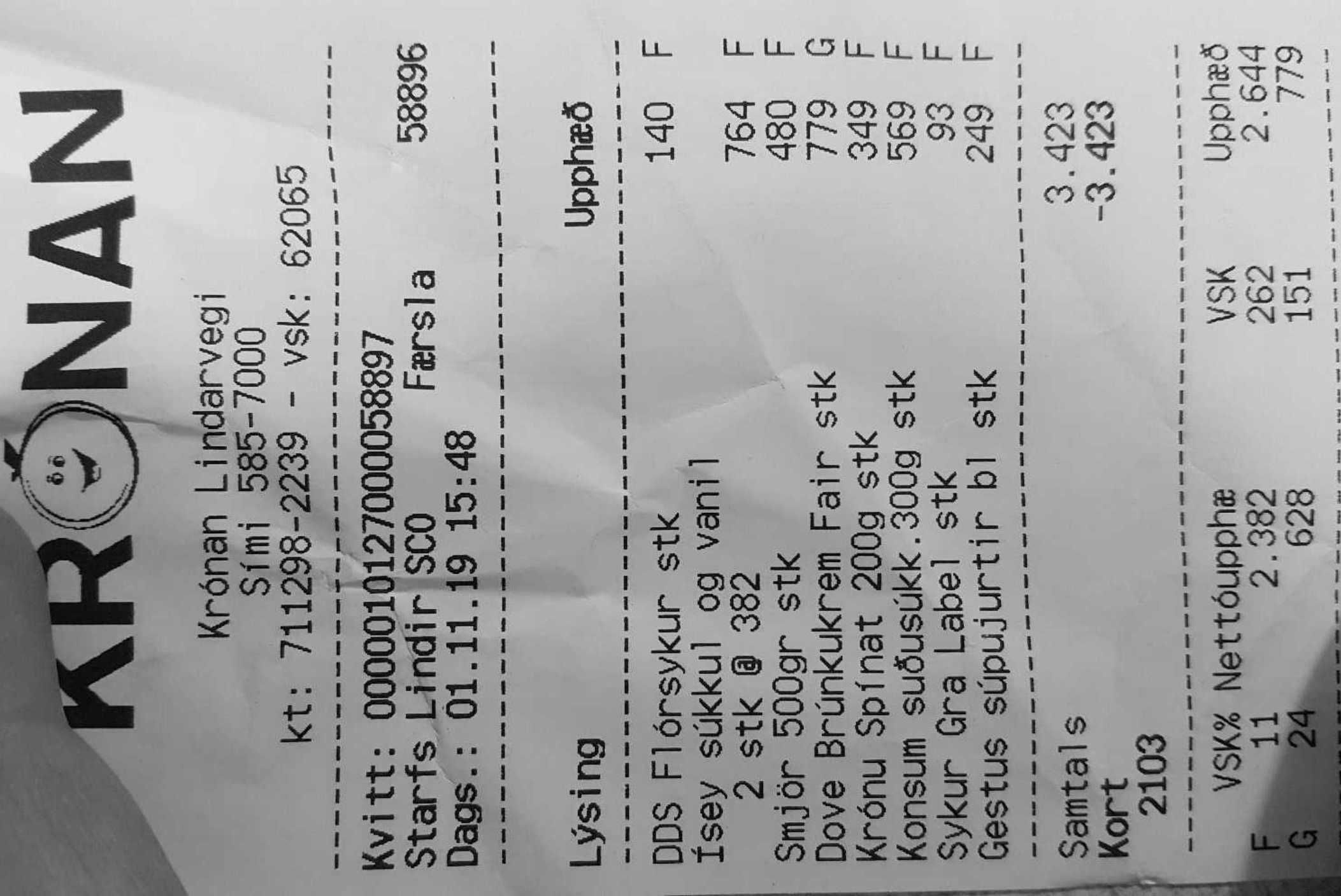 • Skráð samtala og samtala strimilsfærsla stemmir ekki