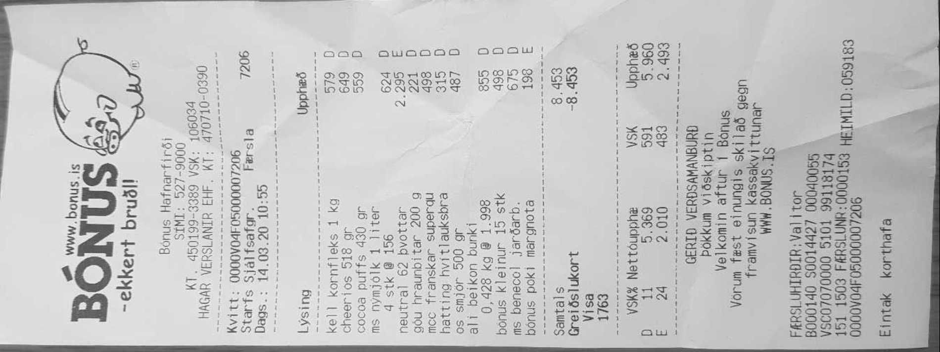 • Skráð samtala og samtala strimilsfærsla stemmir ekki