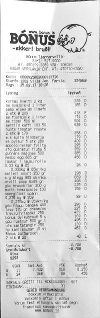 • Skráð samtala og samtala strimilsfærsla stemmir ekki