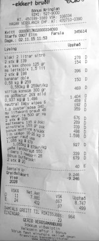 • Skráð samtala og samtala strimilsfærsla stemmir