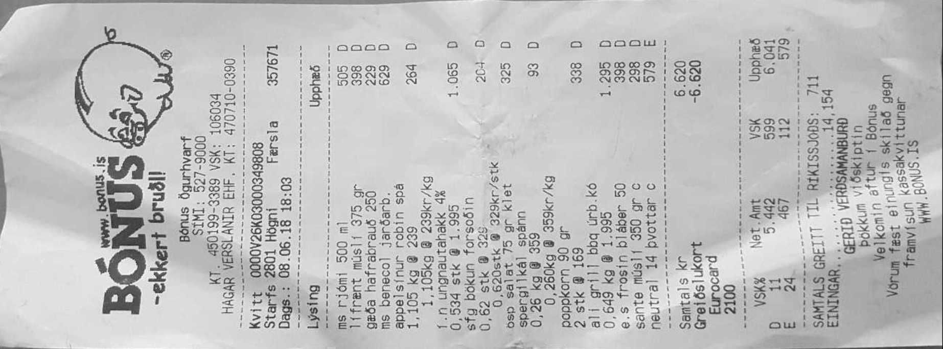 | 1 | MS Rjómi 500 ml | Rjómi | MS rjómi 500 ml | 505 | 1 | 505 | ||