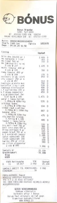 Skráð samtala og samtala strimilsfærsla stemmir ekki