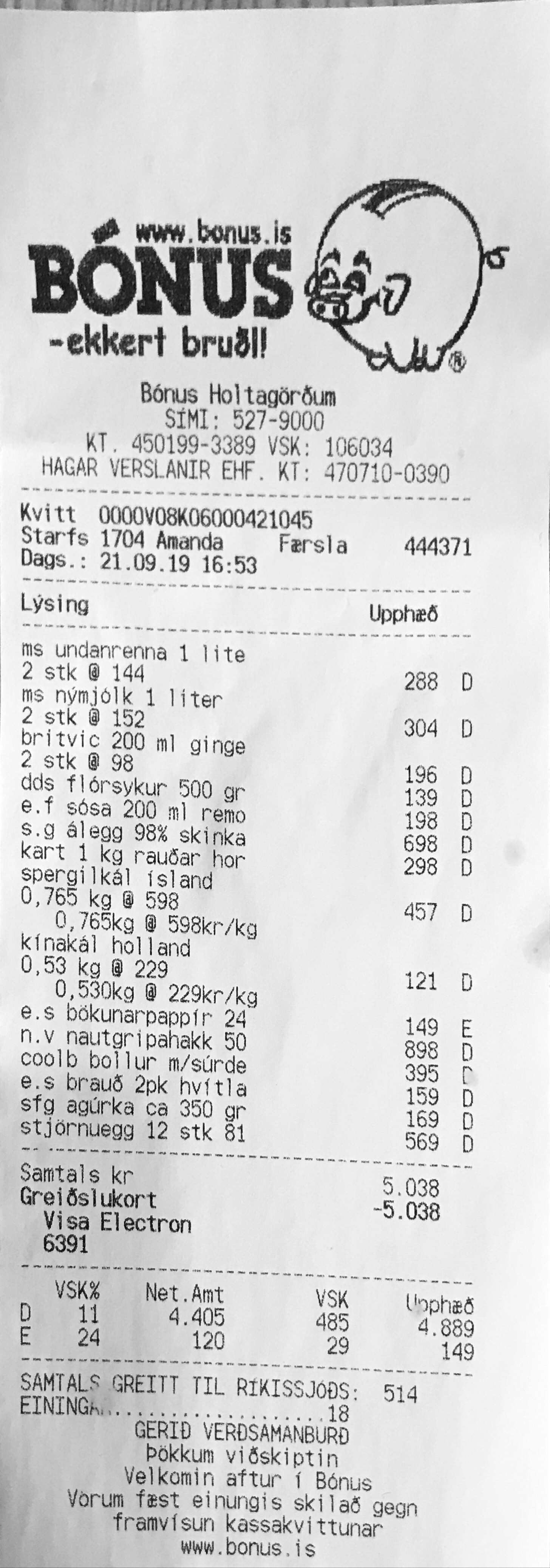 | 6 | kart 1 kg rauðar hor | Kartöflur | 298 | 1 | 298 | |||