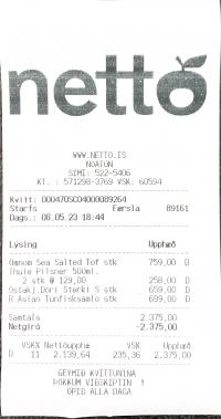 | 2 | thule pilsner 500ml | Léttöl | Thule léttöl, 500ml | 129 | 2 | 258 | ||