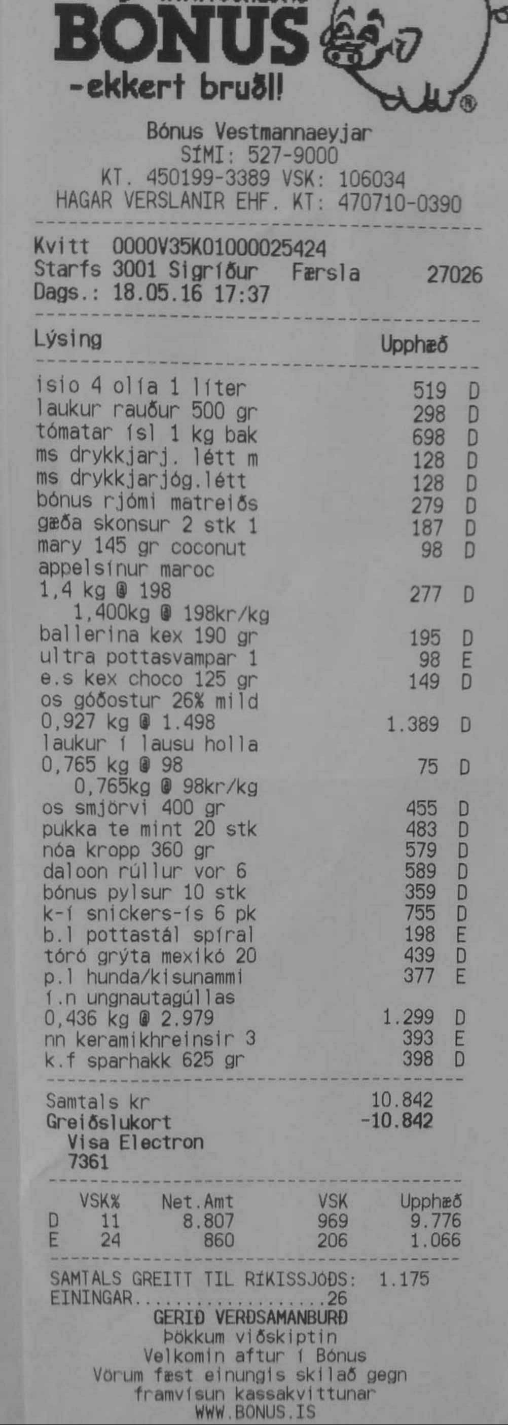 • Skráð samtala og samtala strimilsfærsla stemmir