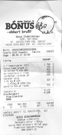 | 1 | k.f hamborgarar 10*1 | Hamborgarar | 1.798 | 1 | 1.798 | |||