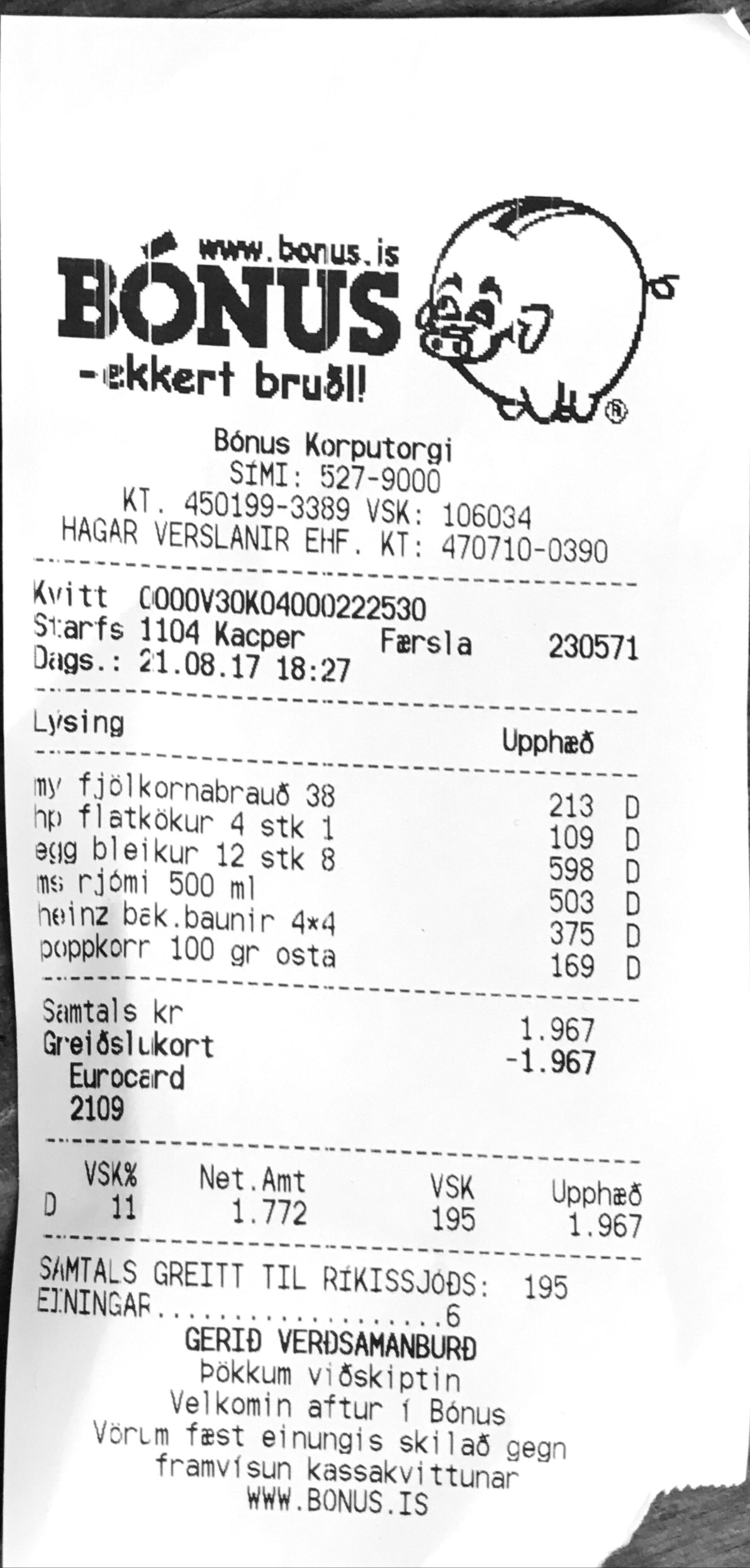 | 2 | MS Rjómi 500 ml | Rjómi | MS rjómi 500 ml | 503 | 1 | 503 | ||