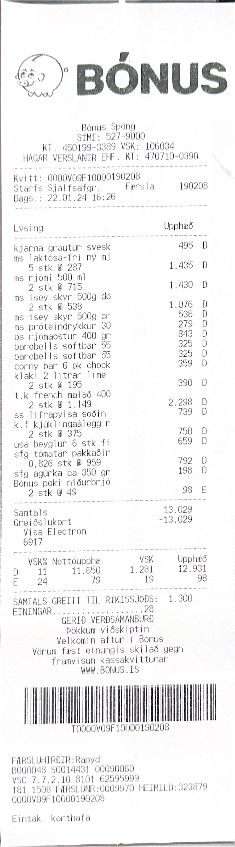 | 18 | Bónus poki niðurbrjó | Innkaupapokar | 49 | 2 | 98 | |||