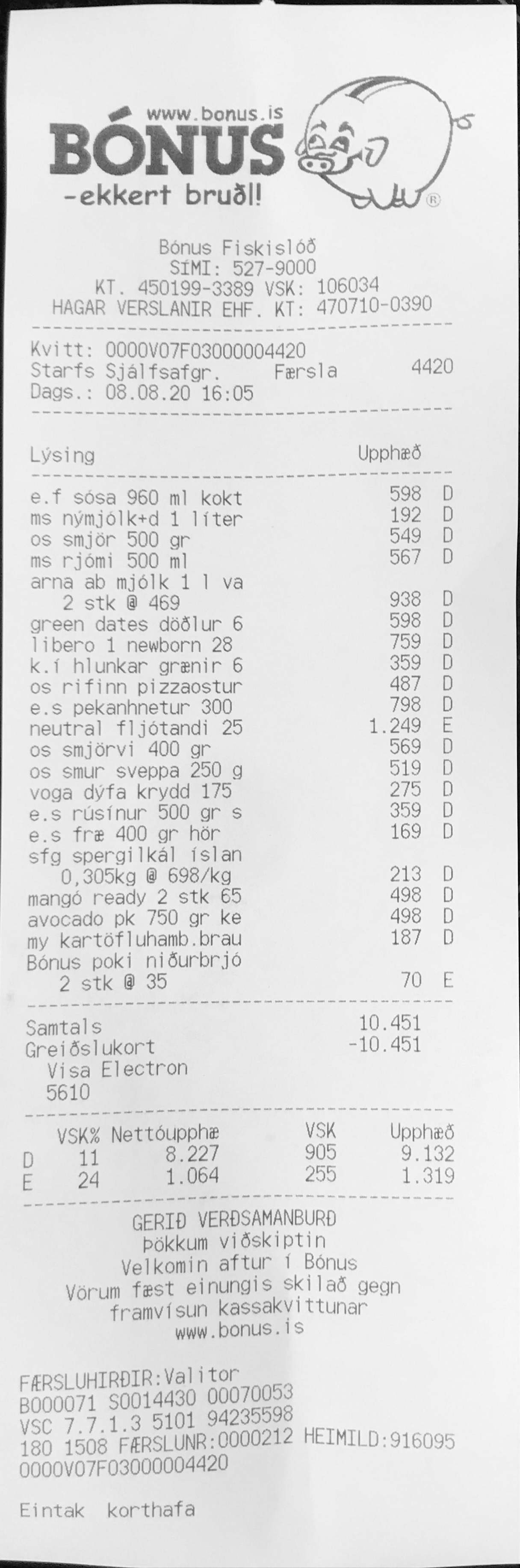 | 19 | Bónus poki niðurbrjó | Innkaupapokar | 35 | 2 | 70 | |||