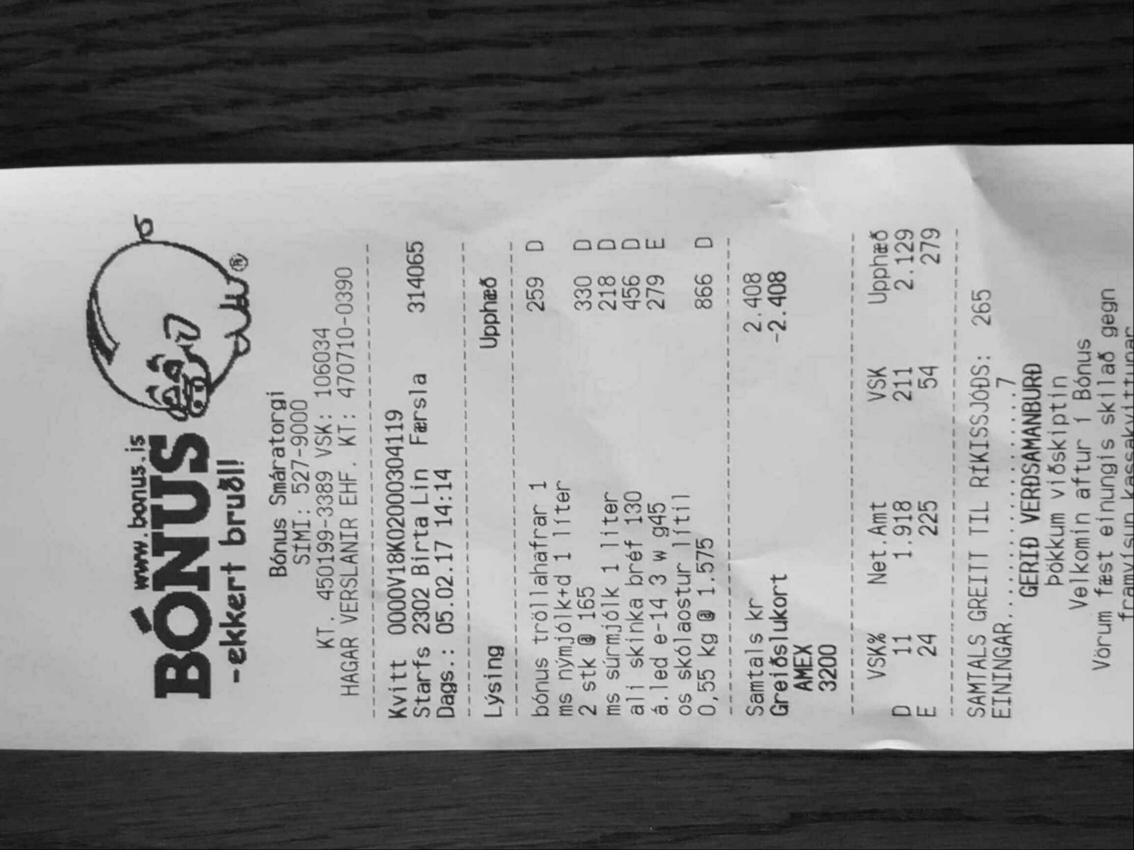 | 3 | ms súrmjólk 1 liter | Súrmjólk | MS Súrmjólk, 1L | 218 | 1 | 218 | ||