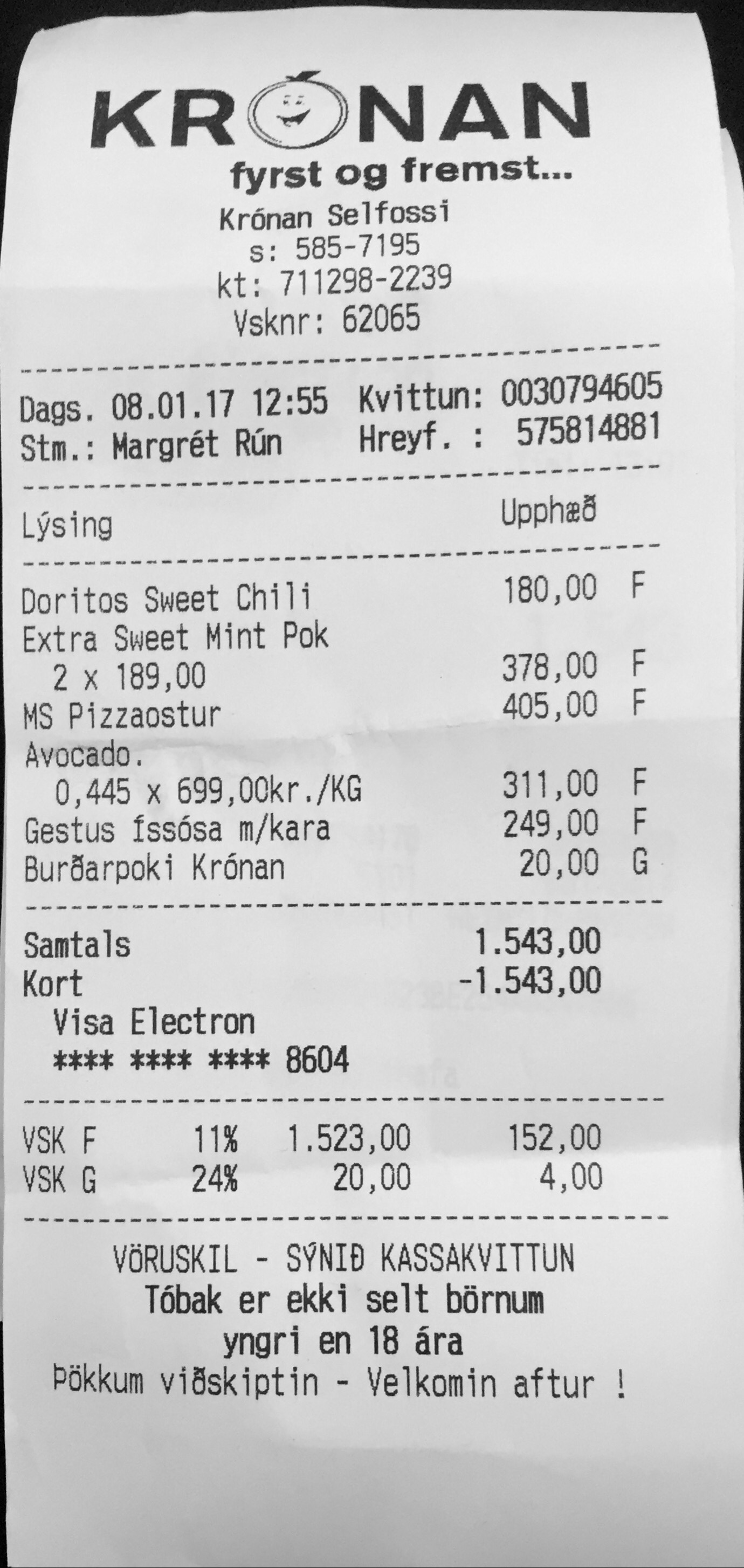 • Skráð samtala og samtala strimilsfærsla stemmir