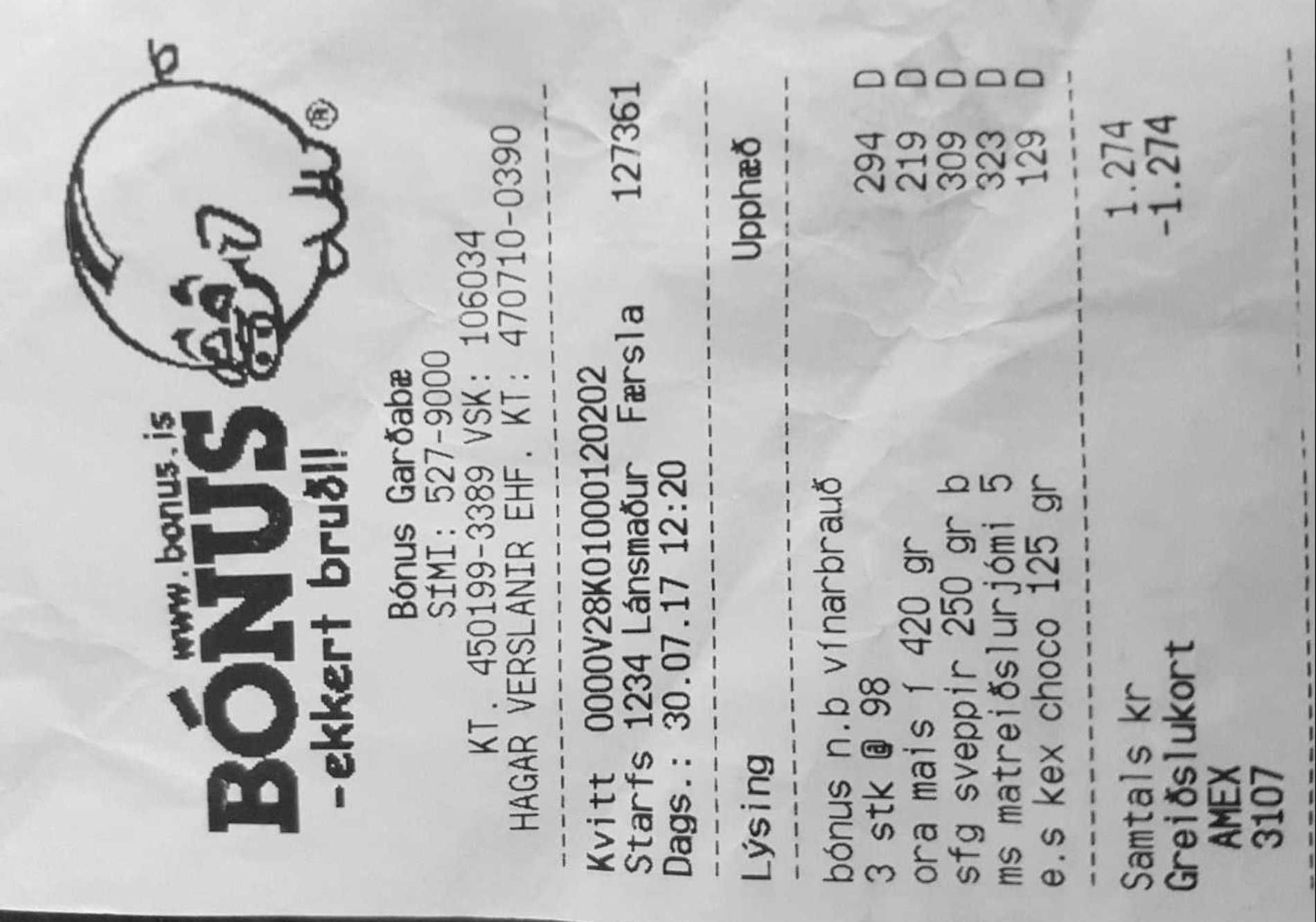 | 1 | bónus n.b vínarbrauð | 98 | 3 | 294 | ||||