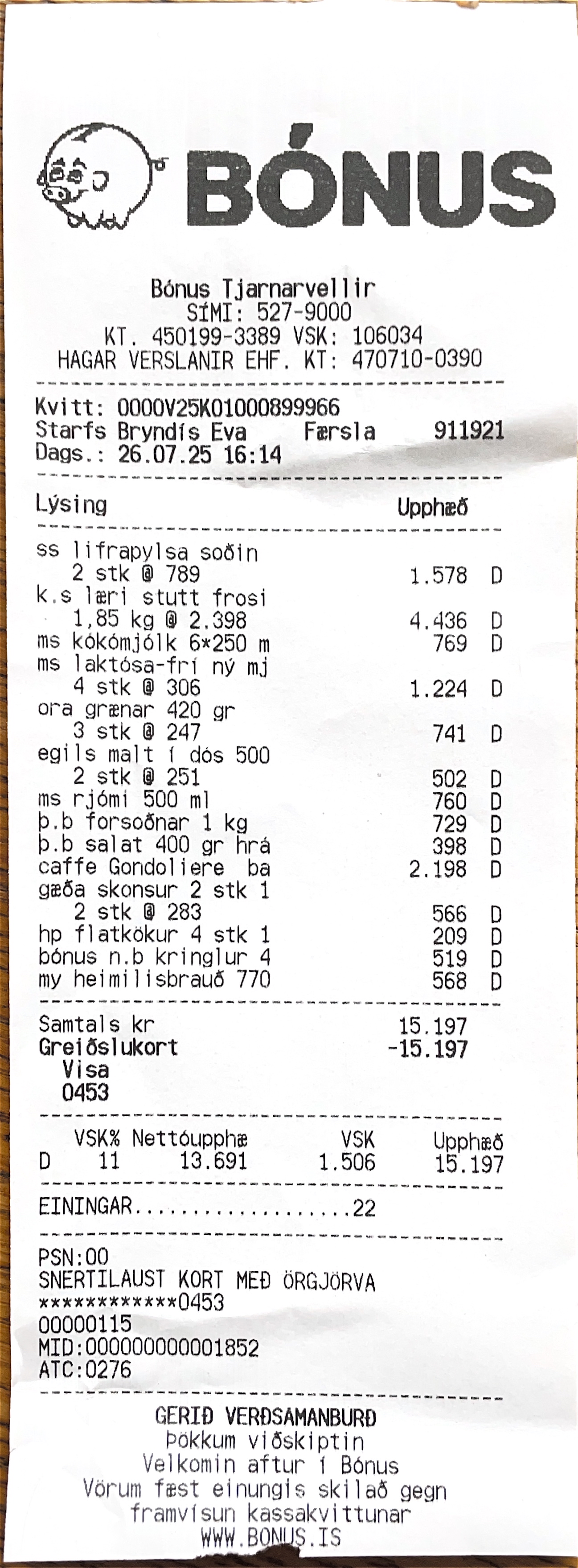 • Skráð samtala og samtala strimilsfærsla stemmir ekki