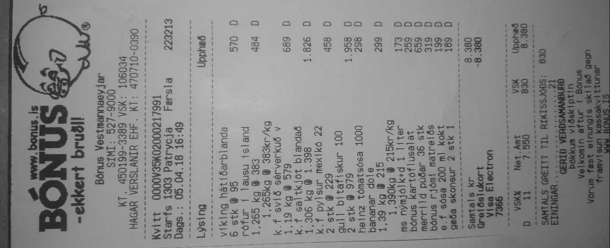 | 8 | bónus kartöflusalat | 259 | 1 | 259 | ||||