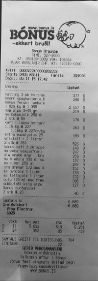 | 3 | Bónus ferskt lambalæ | 1.398 | 1 | 1.398 | ||||