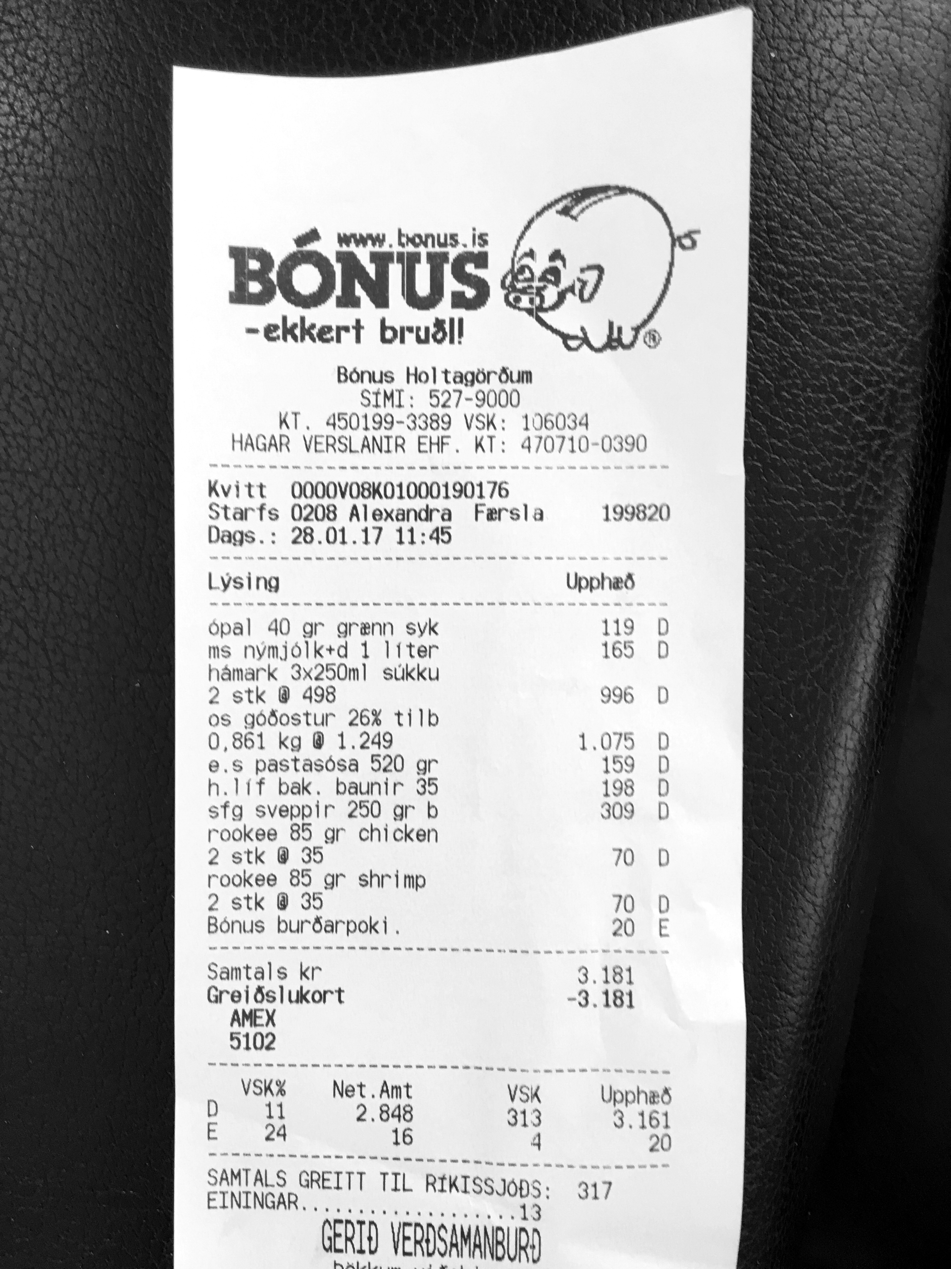 | 10 | Bónus burðarpoki. | Innkaupapokar | Bónus burðarpoki | 20 | 1 | 20 | ||