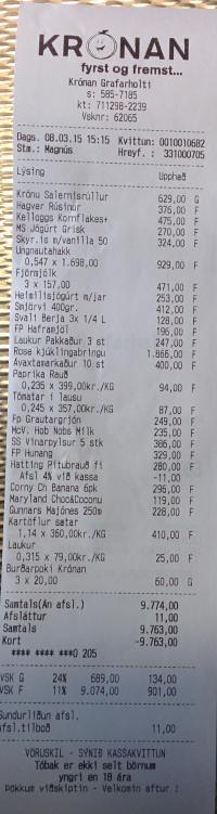 • Skráð samtala og samtala strimilsfærsla stemmir