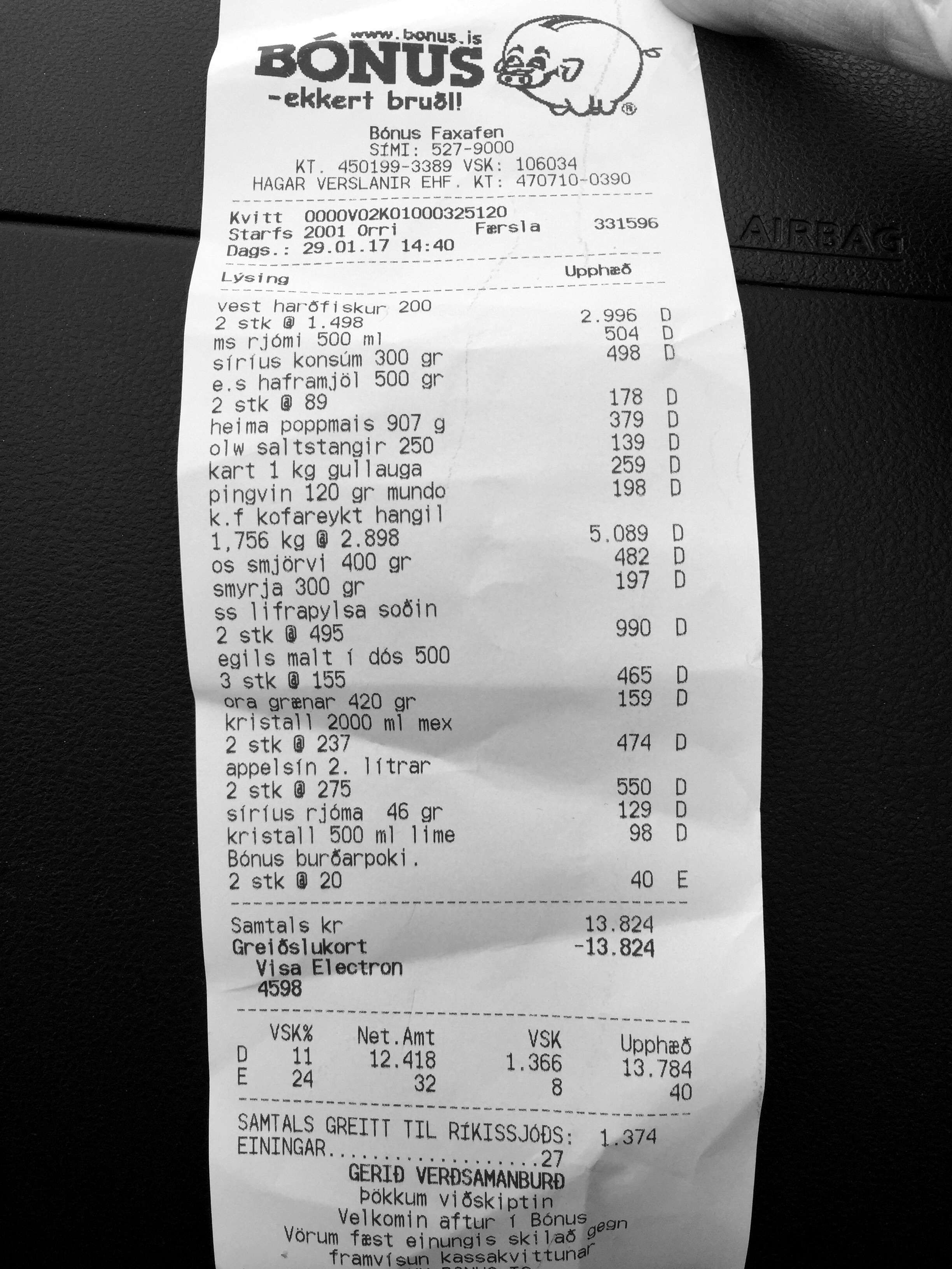 | 17 | Bónus burðarpoki. | Innkaupapokar | Bónus burðarpoki | 20 | 2 | 40 | ||